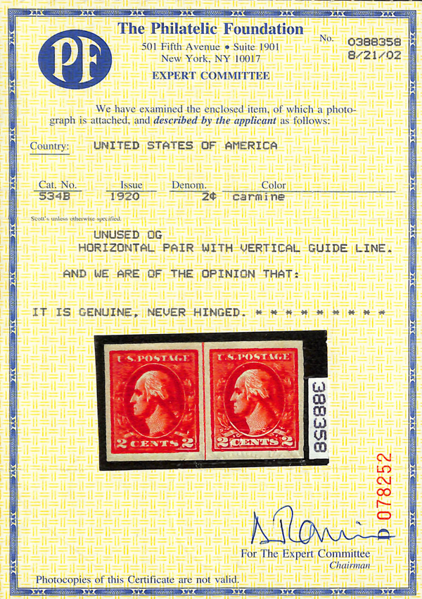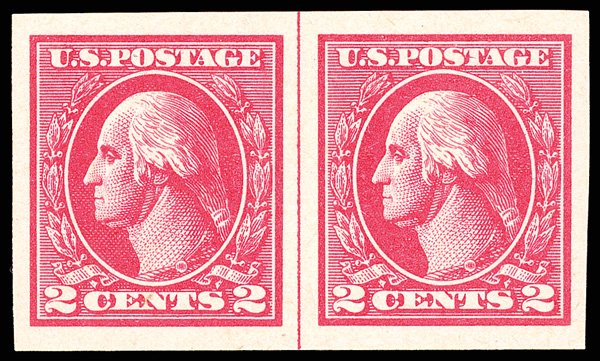 1918, 2¢ carmine, type VII, offset printing, imperf. (Scott 534B), horizontal pair with vertical guide line, o.g.,