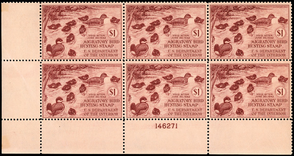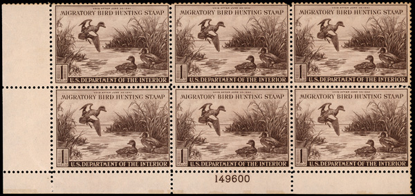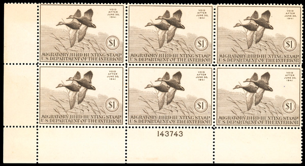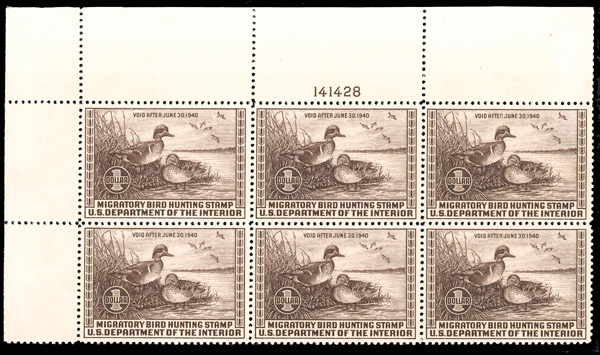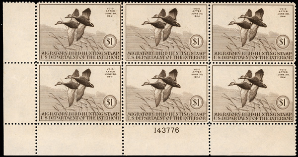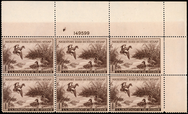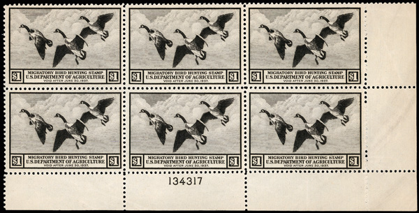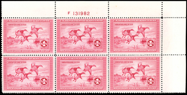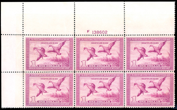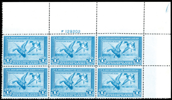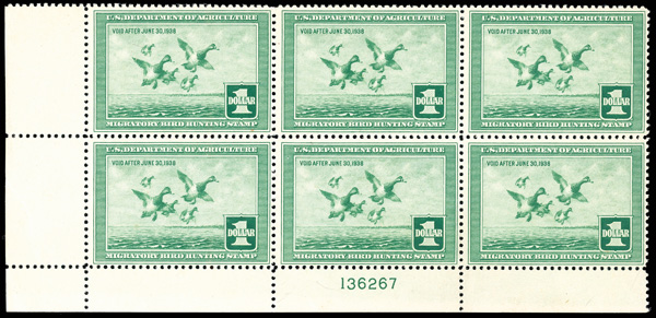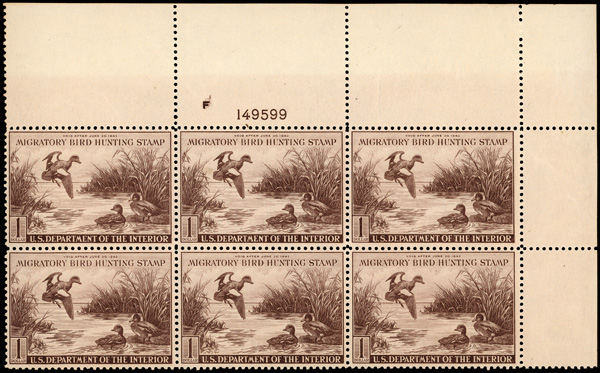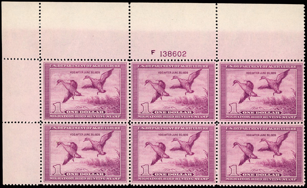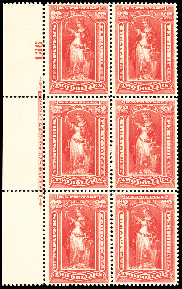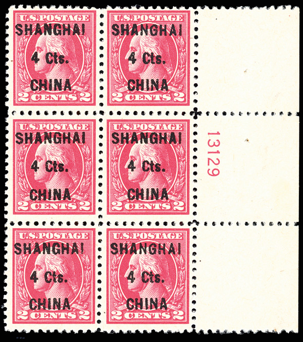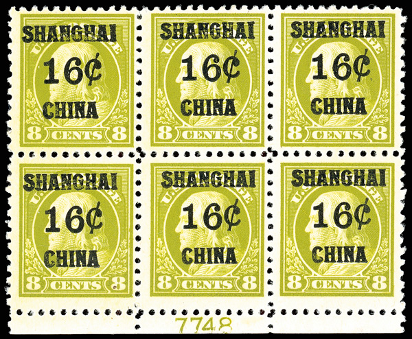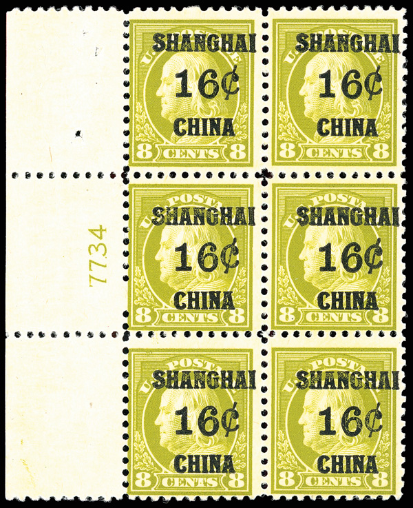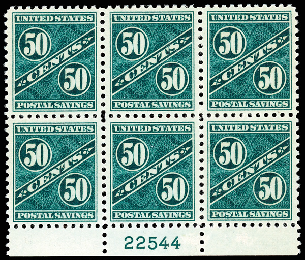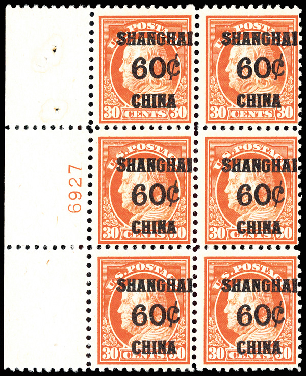 Parcel Post, 1913, 75¢ Harvesting (Scott Q11), full top margin plate number 6287 block of 6, o.g., lightly hinged,