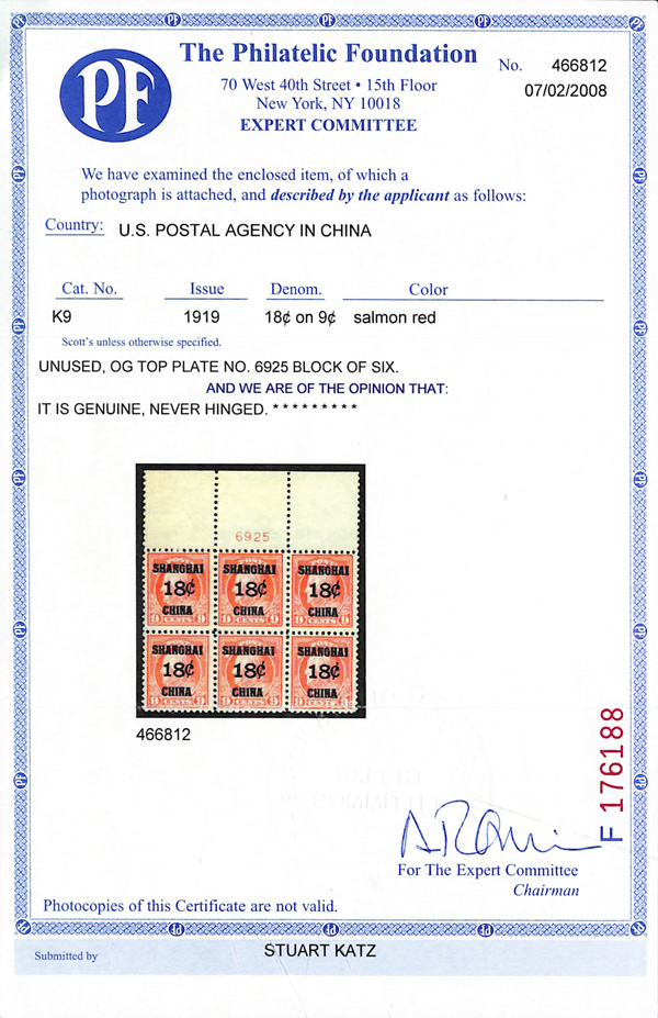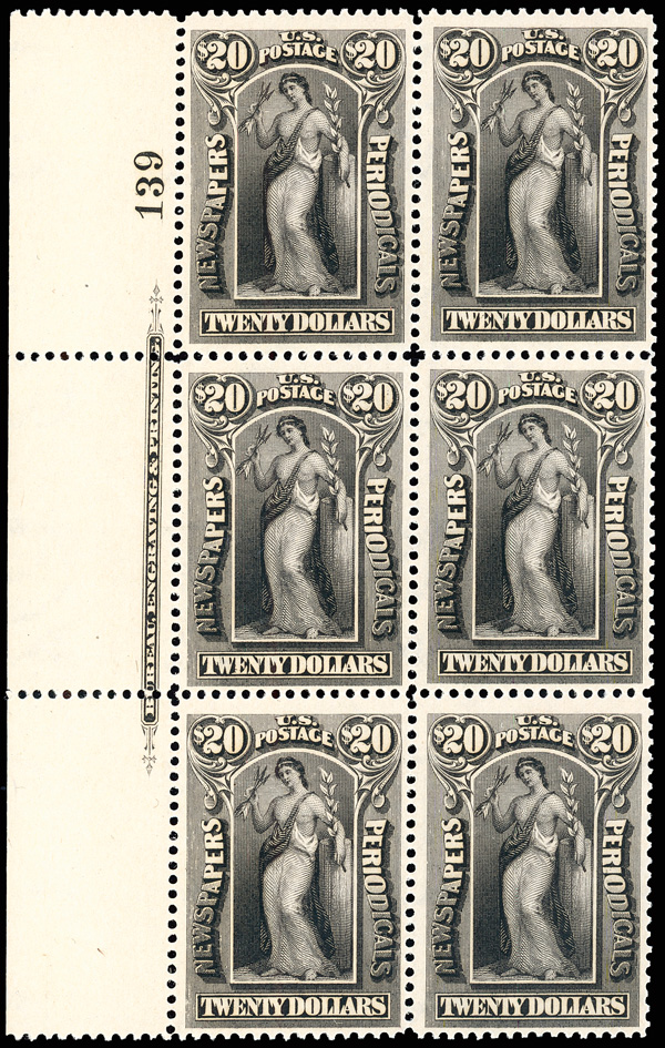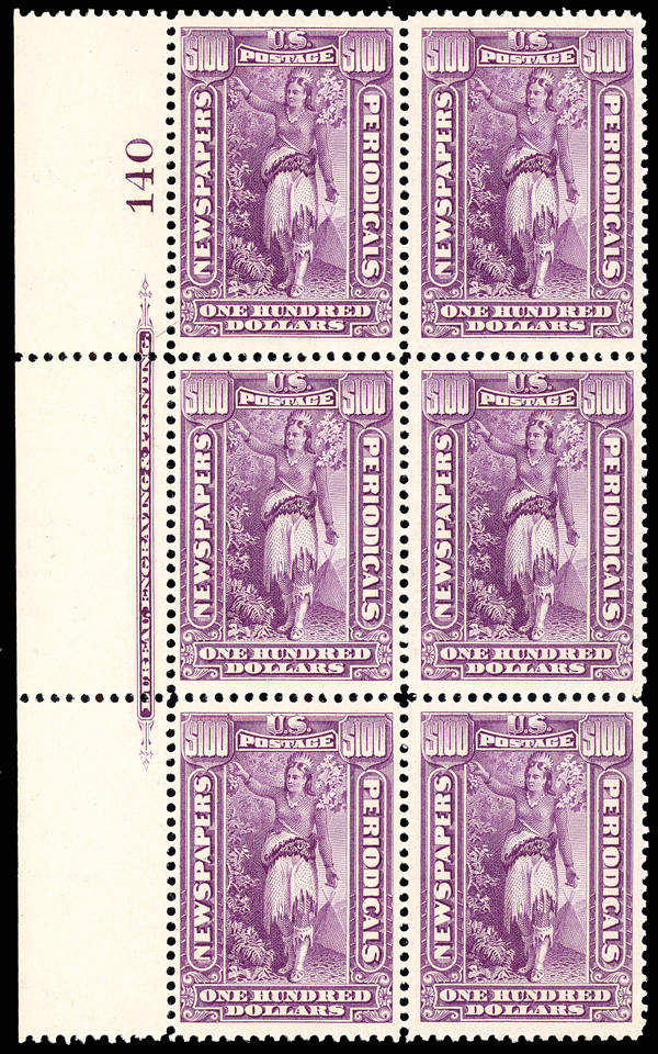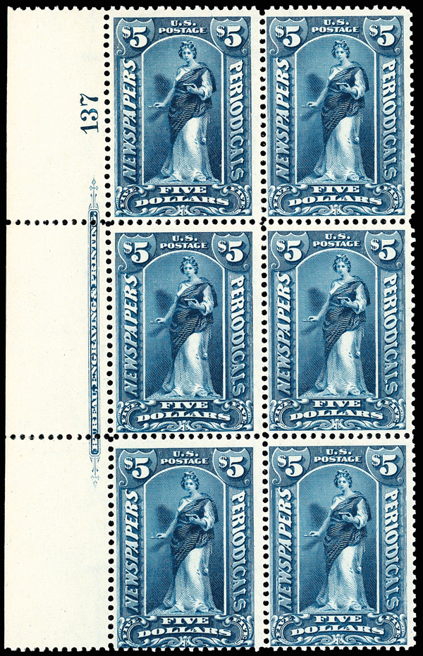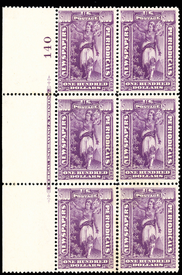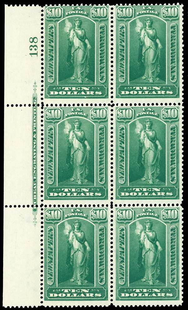 choicely centered, fresh with bold color and detail; perforation separations in selvage and a few reinforced between positions 4 & 5, Extremely Fine nonetheless, a simply gorgeous plate, ex Curtis. Scott $2,000. (Image)