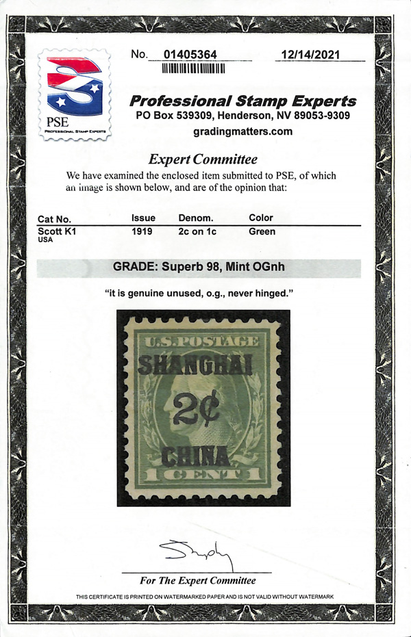 Shanghai). The Bureau of Engraving and Printing overprinted a series of Washington-Franklin stamps which were placed on sale on July 1, 1919 until the closing of the U.S. Postal Agency in Shanghai sometime after December 31, 1922. (Image) (Image2)