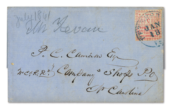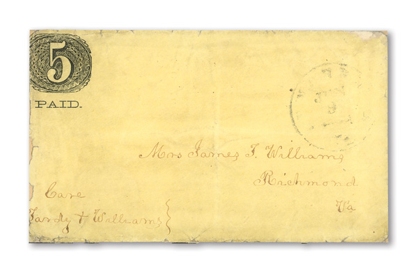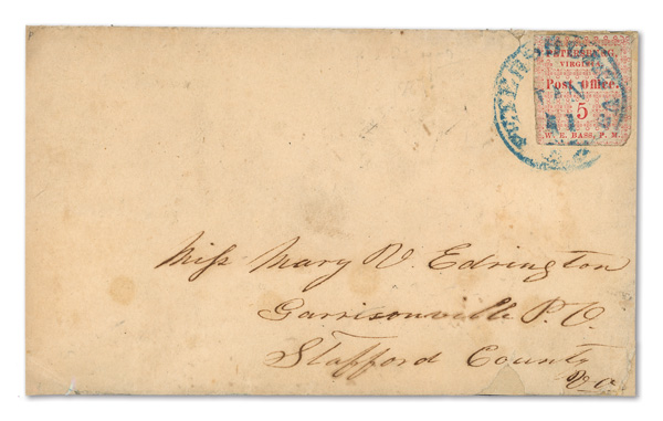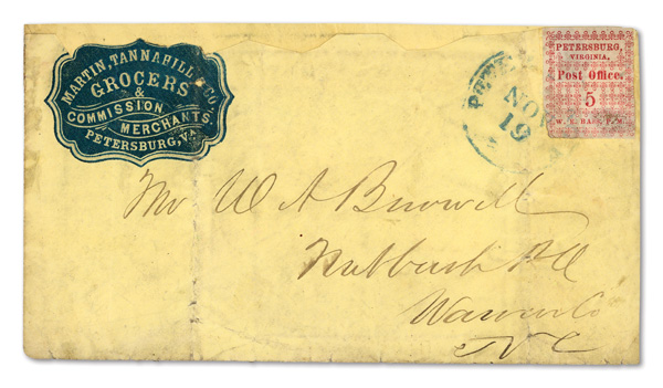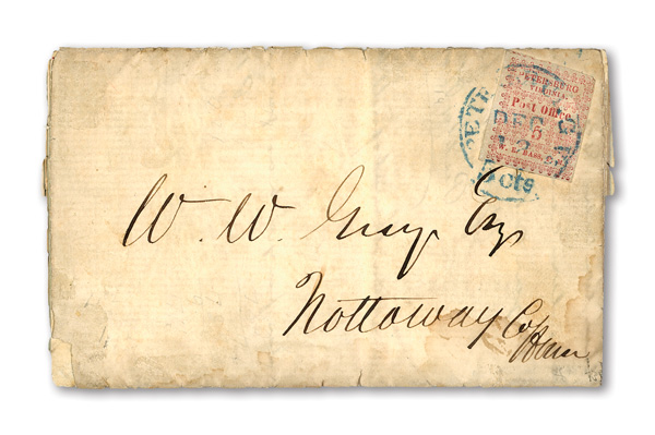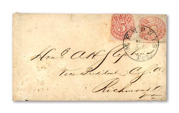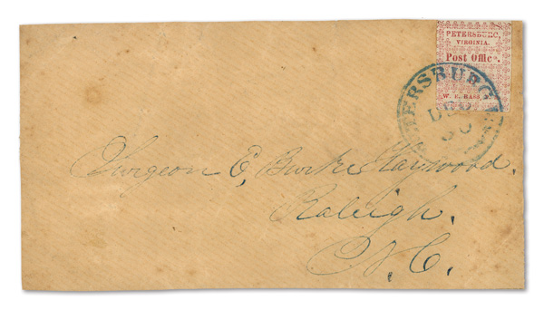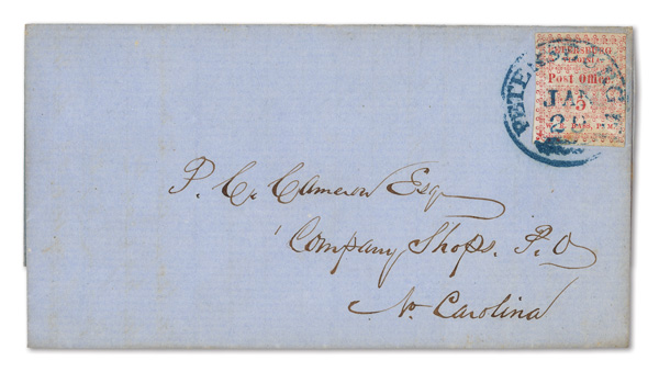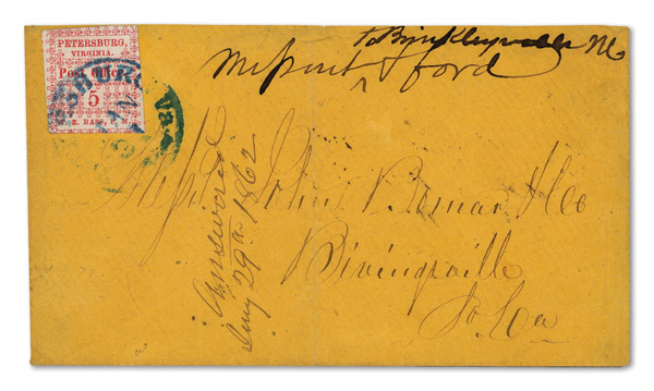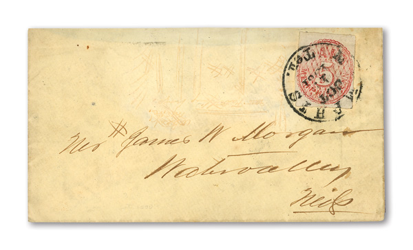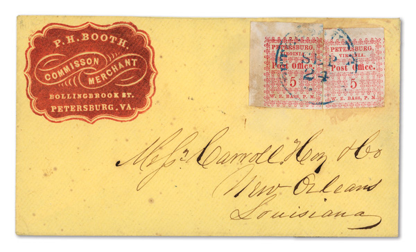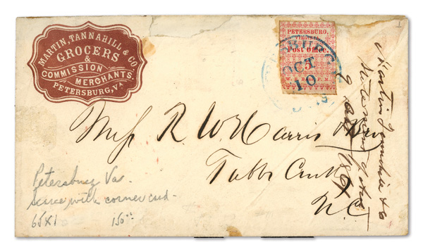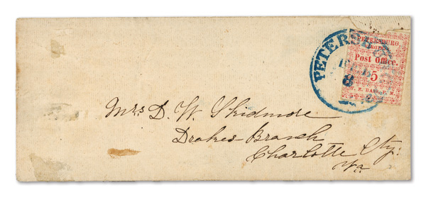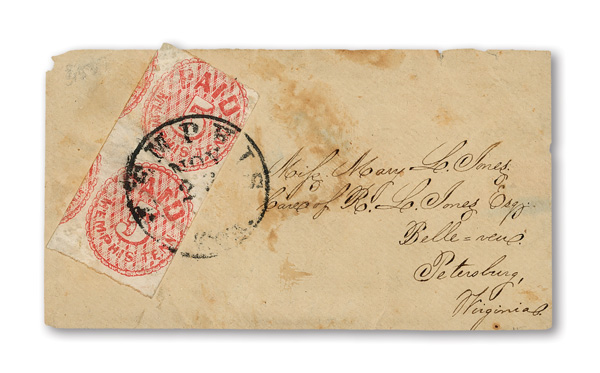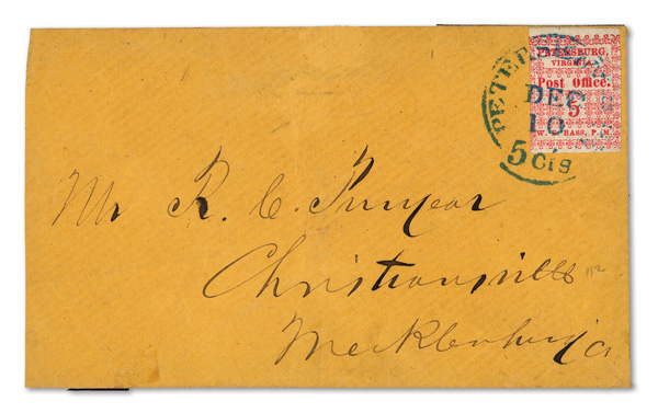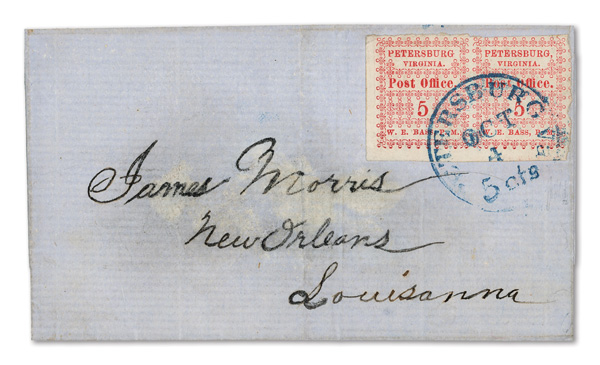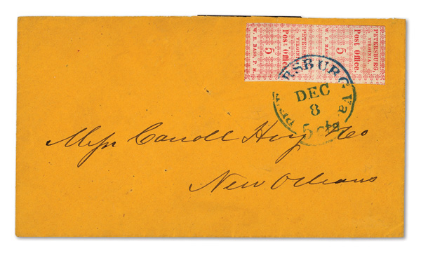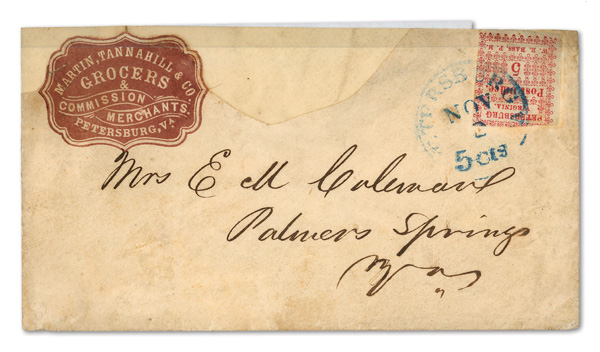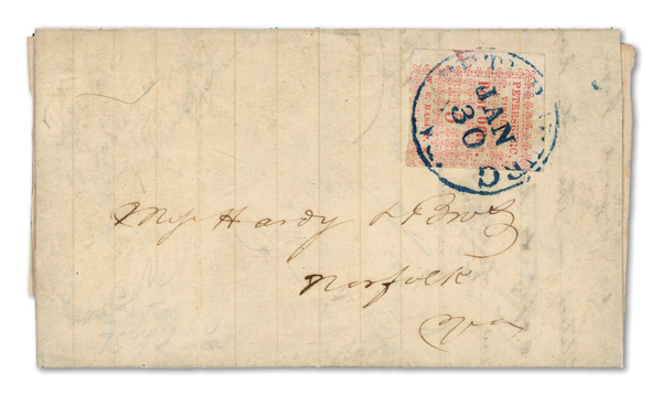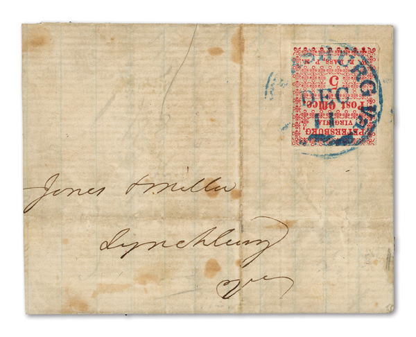 Petersburg, Va., 1861, 5¢ red, 2 singles on cameo cover, earliest known use (Scott 65X1), pos. 1 and pos. 4, former