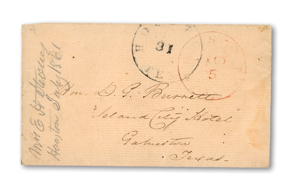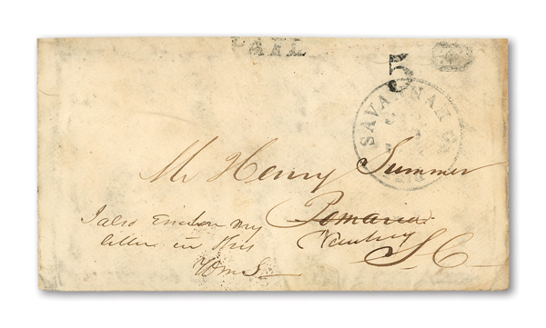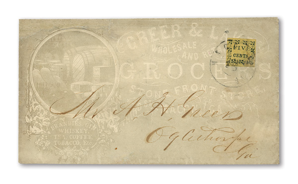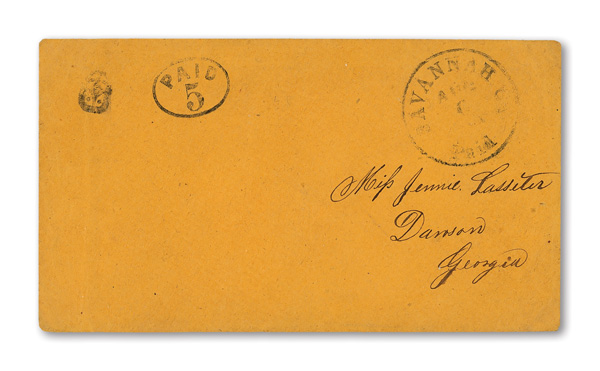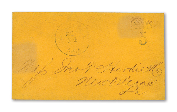 datestamp being the earliest known use on cover with red cameo corner card for "P.H. Booth Commission Merchant, Bollingbrook St."; stamps with gum staining, cover with usual staple holes for this correspondence, otherwise Fine, Listed in the