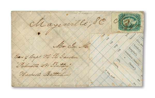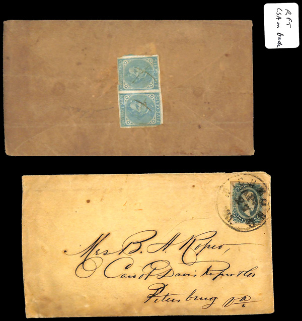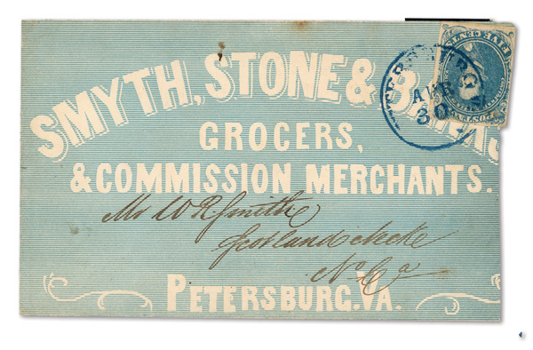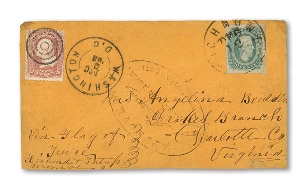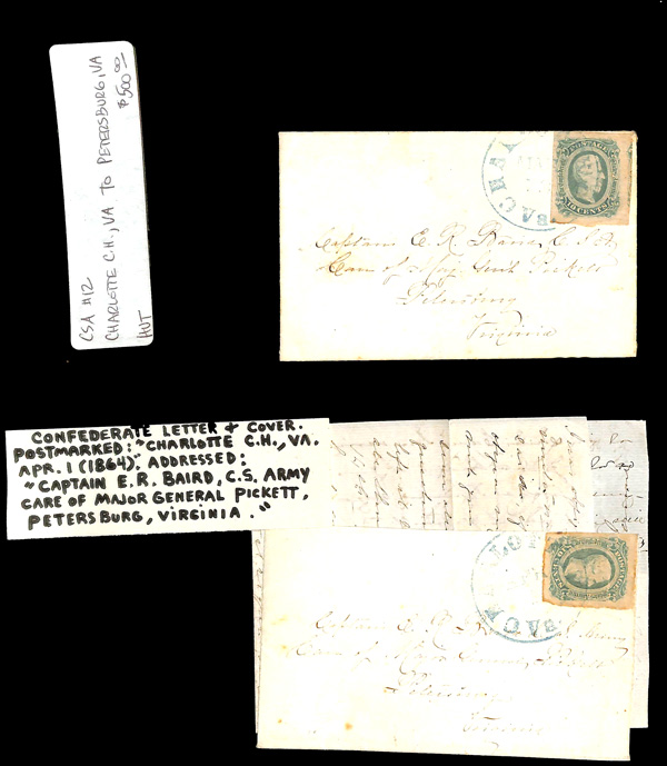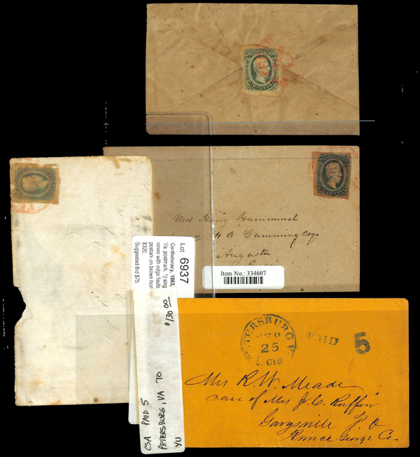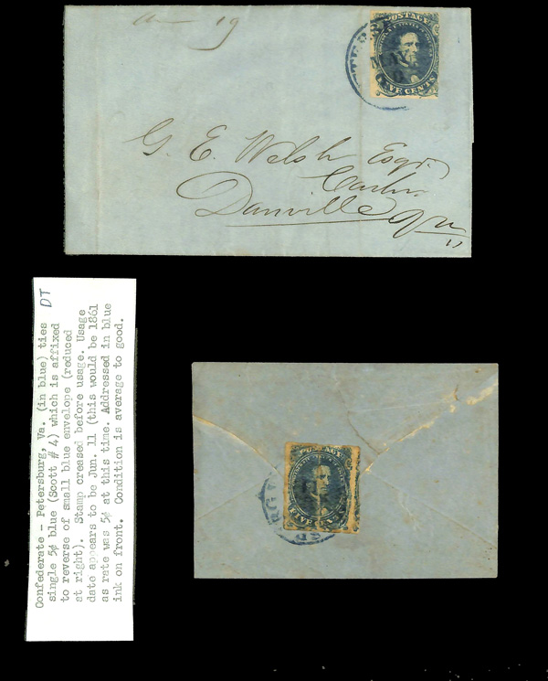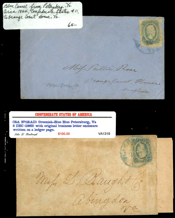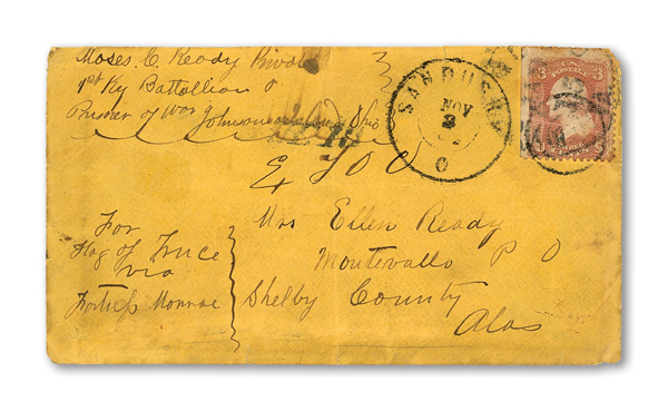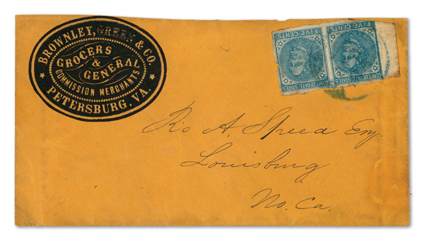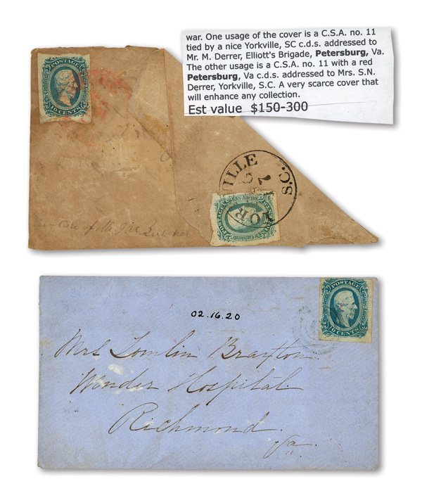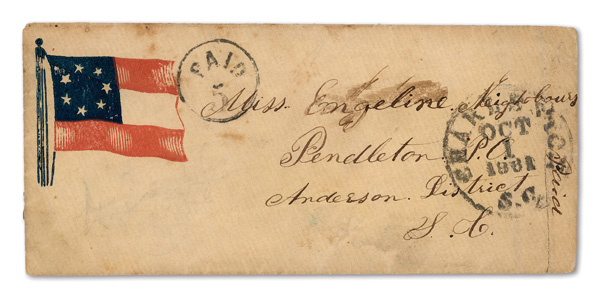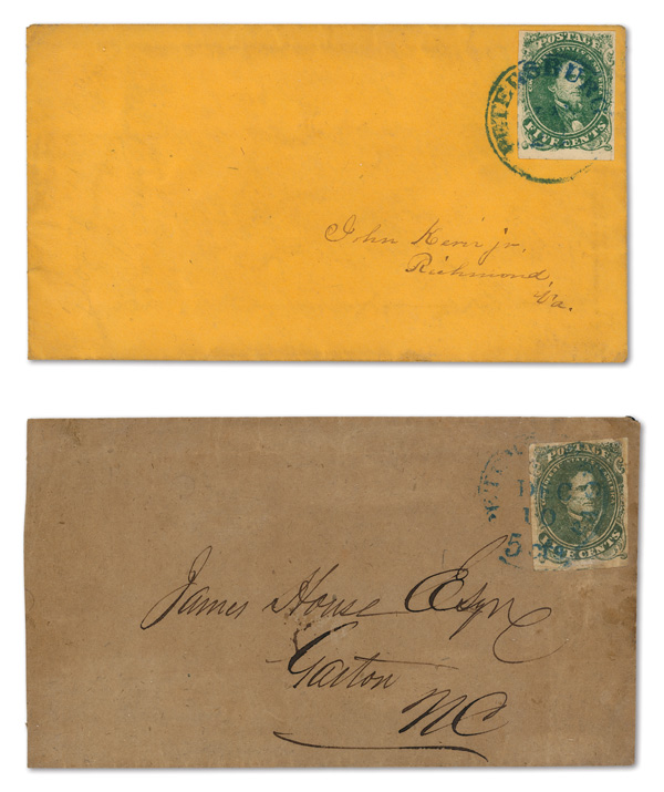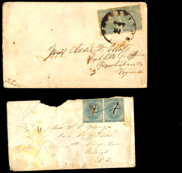 stamps with individual vertical pen cancel, "Acton Texas March 4/64" manuscript postmark at top left on gray cover front addressed to Capt. J.A. Formwalt, Dalton Ga. Cleburne's Division, Smith's Brigade, Army of Tennessee", manuscript "Via Shreveport