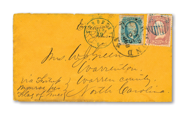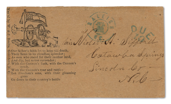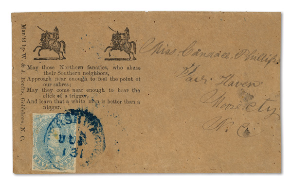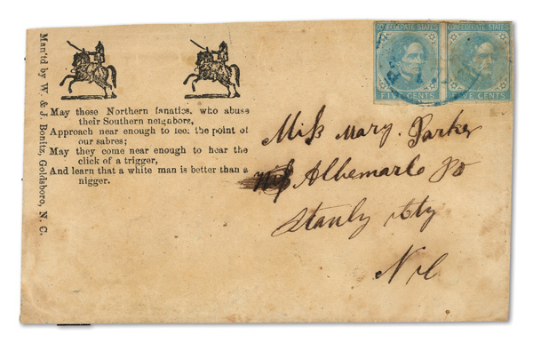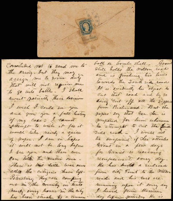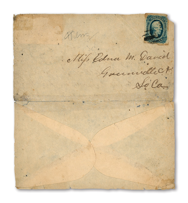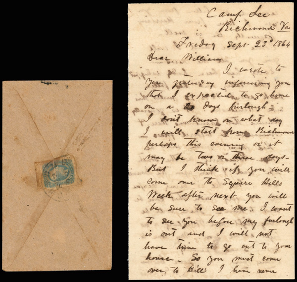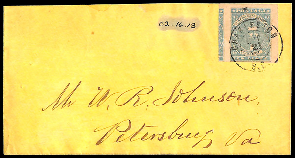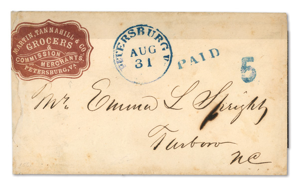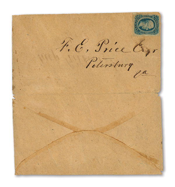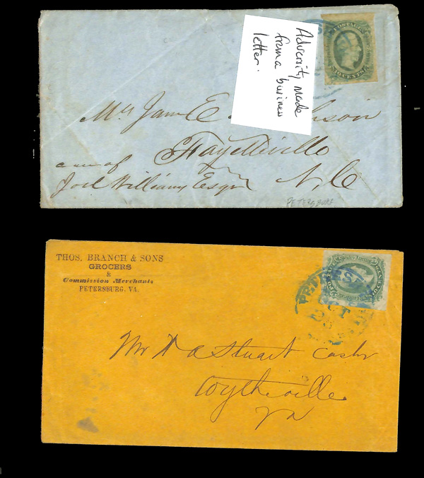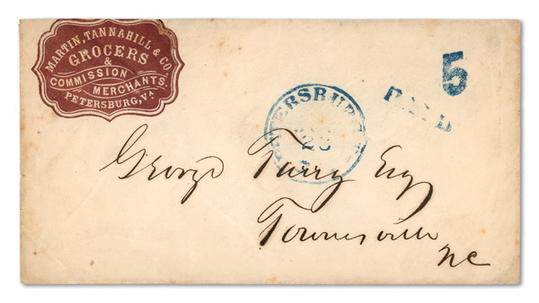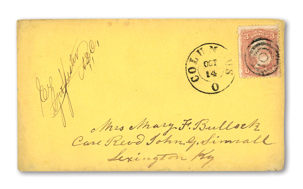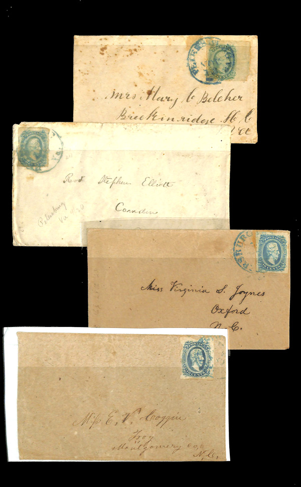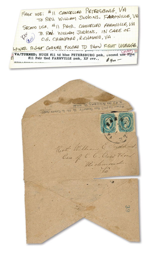 stamps with individual vertical pen cancel, "Acton Texas March 4/64" manuscript postmark at top left on gray cover front addressed to Capt. J.A. Formwalt, Dalton Ga. Cleburne's Division, Smith's Brigade, Army of Tennessee", manuscript "Via Shreveport