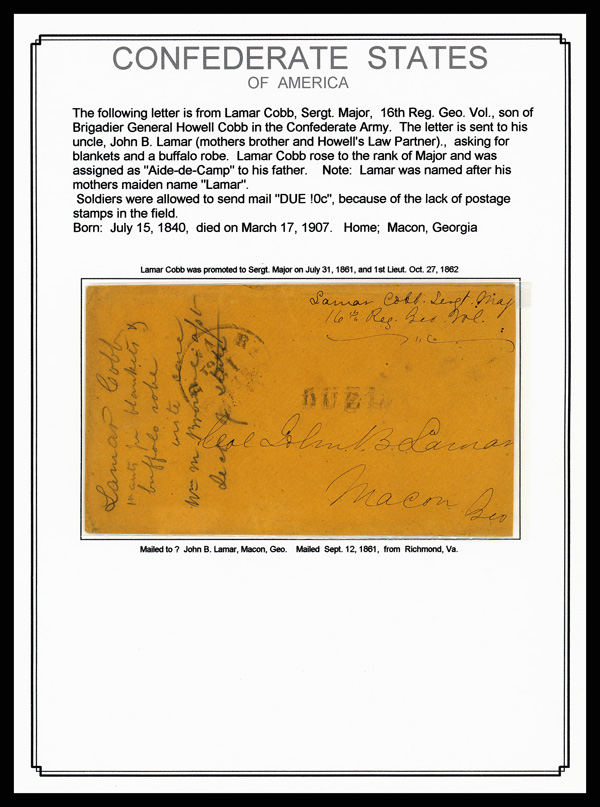 https://granburydepot.org/newsite/biography/major-john-alexander-formwalt-and-the-tenth-texas-infantry/ We paste the potion of Formwalt's story when he would have received this cover here -- "At the Battle of Chickamauga, fought on September 18–20,