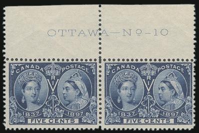 5299 54 image54, Top margin PLATE 10 Imprint Pair. Fresh, F+, NH, light natural gum bends (Image) Estimate 200.00+ $Cdn