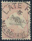 1385 127 image127, Ten Shilling, pale shade, neat Late Fee Melbourne cancel, F, couple nibbed perfs (Image) Cat 200.00