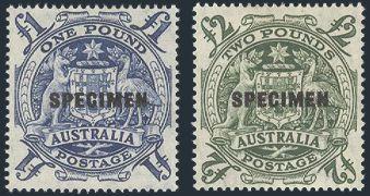 1397 220-1 image220-1, Arms £1 and £2 High Value with 'SPECIMEN' overprints. Fresh, VF, LH (Image) Estimate 125.00+ $Cdn