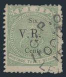 2042 23 image23, Scarce 3d "V.R." overprint with watermark "O" inverted and reversed, neat Levuka datestamp cancel. F, couple nibbed perfs (SG #20, Cat £1,300). Ex Gillis (Image) Cat 1,000.00