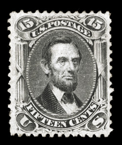 left, extremely fine 2005 PF certificate.#77, 15c Black, attractive used single, wonderfully well centered, strong fresh color, neat circle of wedges cancel as well as a portion of a red transit postmark at bottom left, extremely fine; 2005 PF certificate. (Image) $225.00