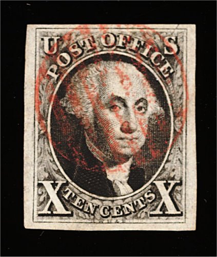 17 og 4 image#4, 10c Black reproduction, without gum as issued, a gem example which features four very large and wonderfully well balanced margins, razor-sharp impression and deep rich color on particularly bright paper, extremely fine; not often seen this choice; 2001 PF certificate. (Image) 1,100.00