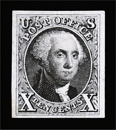 16 og 4 image#4, 10c Black reproduction, without gum as issued, an extraordinarily choice example of this scarce stamp, being an impressively margined and brilliantly fresh copy, large to huge margins all around, including partial sheet margins at both left and bottom, strong color and crisp impression, an extremely fine gem in every regard; sheet margin examples are especially scarce; 2001 PF certificate. (Image) 1,100.00