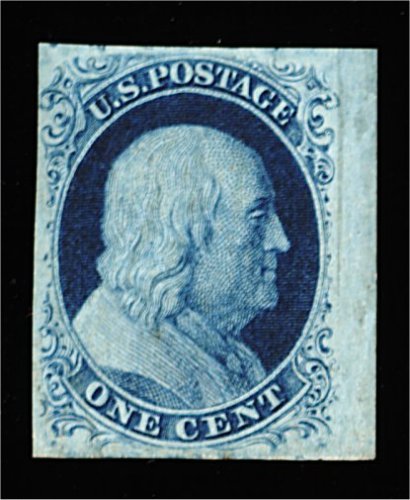 19 og 7 image#7, 1c Blue, Ty. II, an impressively margined mint single, featuring extravagantly large margins all around, including a sizable sheet margin at right, extraordinarily fresh as well, with luxuriously rich color and a strong impression, full clean o.g., lightly hinged, very minor diagonal crease/bend at bottom left, almost entirely in the margin and not at all distracting from this otherwise extremely fine and choice stamp; 1998 PF certificate. (Image) 1,100.00