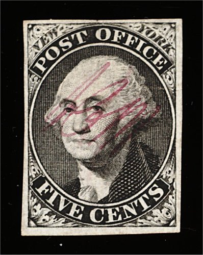 3 ng 9X1 image#9X1, New York, N.Y. 5c Black Postmaster Provisional, signed ACM connected, an exceptionally choice unused example of this classic stamp, four large to very large margins, strong color and a detailed impression on bright paper, extremely fine; premium quality unused examples of this provisional are especially scarce and desirable, as original gum copies are almost non-existent; 1998 PF certificate. (Image) 1,300.00
