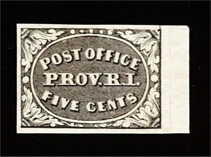6 nh 10X1 image#10X1, Providence, R.I. 5c Gray black Postmaster Provisional, position 5, a desirable "post office" fresh mint single, very large margins all around, fresh color, o.g., never hinged, extremely fine; never hinged examples are quite scarce, particularly this choice; 1998 PF certificate. (Image) for hinged 400.00