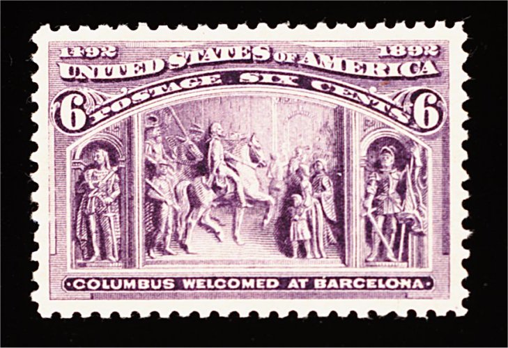 261 nh 234 image#234, 5c Columbian, exceptionally well centered, unusually wide margins, strong rich color, o.g., n.h., extremely fine; 1998 PF certificate. (Image) 180.00