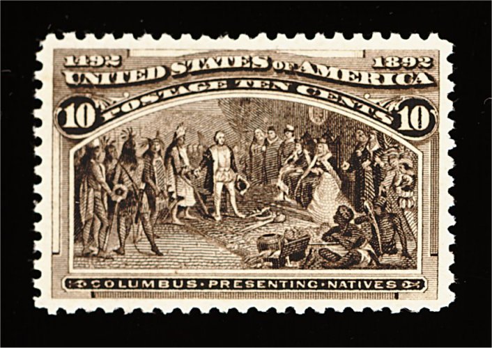 266 nh 237 image#237, 10c Columbian, the perfect mint single for the collector who has been seeking out a Ten Cent Columbian with truly spectacular eye appeal, possessing absolutely flawless centering amid very large margins, but equally as striking is this stamp's incredibly intense color in the preferred black brown shade, plus its impression could not be more detailed on bright fresh paper, even its perforations are uniformly full and long, immaculate o.g., n.h., an extremely fine gem for the most fastidious collector; 2000 PF certificate. (Image) 250.00