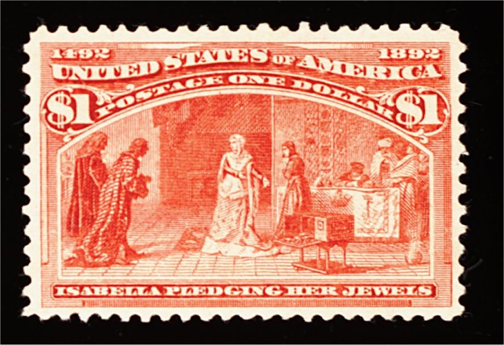 272 og 241 image#241, $1.00 Columbian, an especially choice and handsome mint single that is extraordinarily well centered within unusually large margins, strong bright color, clean o.g., lightly hinged, extremely fine; premium quality One Dollar Columbians are among the most difficult of the entire series to obtain; 2000 PF certificate. (Image) 1,500.00