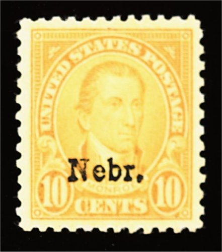 605 nh 679 image#679, 10c "Nebr." ovpt., an exceptional mint example of this, the key value to the series, sporting huge margins all around and being remarkably well centered within these uncharacteristically wide borders, radiant color, o.g., n.h., extremely fine; a striking large-margined gem; 1999 PF certificate. (Image) 200.00