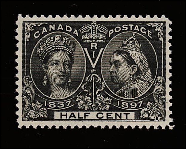 953 nh 50 image#50, 1897 1/2c Jubilee, select mint single, wonderfully well centered within large margins, strong color and impression, pristine o.g., n.h., extremely fine; 2000 PF certificate for a block of four, this being the bottom left stamp (Unitrade C$375.00). (Image) 200.00