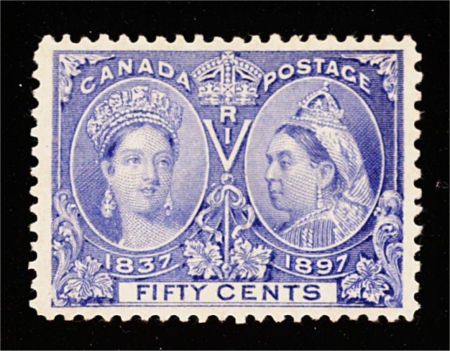 962 nh 60 image#60, 1897 50c Jubilee, exceptionally choice mint single, wonderfully well centered within large margins, rich color, immaculate o.g., n.h., extremely fine; quite scarce both in this premium condition and never hinged; 2001 PF certificate (Unitrade C$675.00). (Image) 550.00