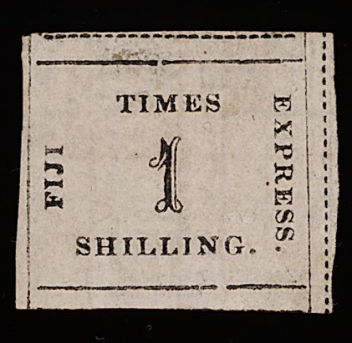 1041 ng 5 image#5, 1870 1/- Black on rose "Fiji Times Express", unused on rouletted quadrille paper, full roulettes on three sides, a few minor thins which do not facially detract and are quite common on these rare stamps, very fine appearance; 1979 RPS certificate (S.G. #4; £1,500). (Image) 1,700.00