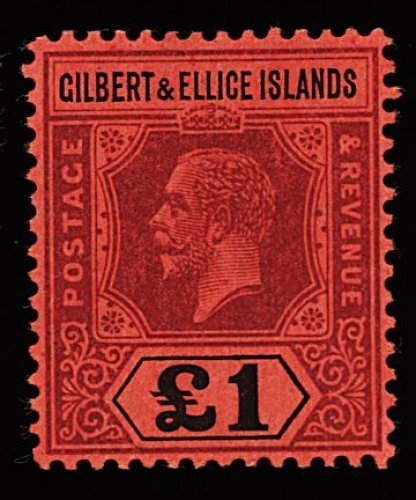 1053 og 26 image#26, 1924 £1 Violet and black on red, well centered example of this key stamp, bright colors and paper, o.g., very fine; signed (S.G. #24; £600). (Image) 775.00