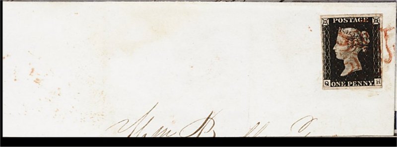 1057 c 1 image#1, 1840 1p Black, Plate II, QH,, sharp early impression with full to large margins, on 1840 entire from London to Hampstead, tied by Maltese Cross in red and showing on reverse a very fine impression of the "PD / MY 7 / 1840" d.s. in red, the second official day of use; also similar entire from the same correspondence bearing 1p Black, Plate II, MB, with full margins and Maltese Cross cancellation which ties it to the cover and showing two different strikes of the May 7, 1840 d.s. in red on reverse, the cover centrally torn through address panel passing under but not affecting the stamp. (S.G. Spec. A2tb; £4,000 each). (Image) Est. 2,000-3,000