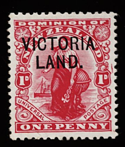 1150 O 121a image#121a, 1908 1p Rose carmine overprinted "King Edward VII Land" in green, vertical block of six (2x3) with "Brit. Antarctic Expd./MR 4 09" c.d.s.; in 1908 a quantity of the 1p Rose carmine stamp of New Zealand was overprinted "King Edward VII Land" and taken on the Shackleton expedition to the Antarctic, due to weather conditions the expedition never reached its destination and landed at Victoria Land instead, the stamps were used aboard the expedition ship, Nimrod, and at the Cape Royds base in McMurdo Sound; while cancelled this is a n.h. item as it was sold to the public at a premium, upper left stamp has trivial crease, very fine (S.G. #A1; £210+). (Image) 240.00+