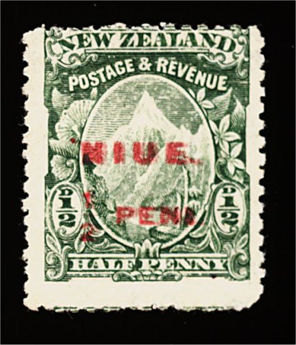 1158 og S.G. #3c imageS.G. #3c, 1902 1/2p Green surcharged in red, double surcharge an enormoulsy rare and seldom offered example of this variety, of which less than five examples are reputedly known, centered to top as usual, o.g., h.r., very fine example of this undercataloged error; 2000 BPA certificate (S.G. #3c; £800). (Image) S.G. 800.00