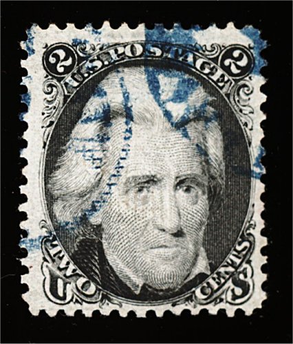 105 O 85B image#85B, 2c Black, "Z" grill, a visually striking used example of this very scarce and incredibly challenging stamp to find in any kind of collectable quality, as the great majority of known examples are poorly margined and have their design cut by perforations on at least one side, however the example offered here boasts enormously large margins all around and is quite well centered within these impressive borders, intense shade and strong impression on brilliant white paper, very attractive and unobtrusive blue town pmk., extremely fine for this issue; a choice used example of the Two Cent "Z" grill; 2001 PF certificate; ex-Sheriff. (Image) 1,050.00