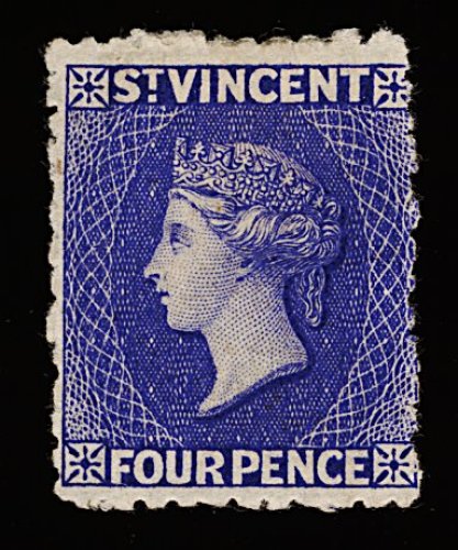 1196 ng 22 image#22, 1873 1/- Lilac rose, perforated 11 to 12 1/2 x 15, one of the few known sound unused examples of this rarity, possessing strong rich color and impression on bright paper, centering is quite typical for these difficult issues, fine; a key stamp in the quest for a complete collection of St. Vincent. (Image) 6,000.00