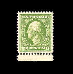 1342 nh 337 image#337, 8c Olive green, superb bottom sheet-margin single, flawlessly centered within unusually large margins for this value, gloriously rich and prooflike color, pristine o.g., n.h., extremely fine; an immaculate gem for the perfectionist; 2003 PF certificate. (Image) 100.00