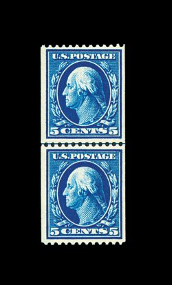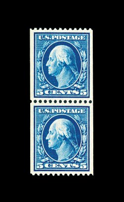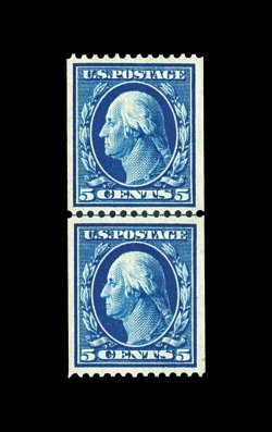 1348 nh 351 image#351, 5c Blue coil, perf. 12 horiz., guide line pair, deep intense color and impression on bright white paper, well centered, o.g., n.h., extremely fine; a rare line pair in this premium never hinged condition; 1975, 1988 and 2001 PF certificates. (Image) 2,500.00