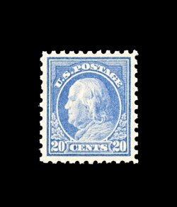 1406 og 438 image#438, 20c Ultramarine, outstanding centering within large margins, bright fresh color, o.g., faintest trace of hinging, extremely fine; 2001 PF certificate. (Image) 220.00