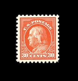 1408 nh 439 image#439, 30c Orange red, marvelous mint example, wonderfully well centered within large margins, strikingly intense color and a deeply incised impression, pristine o.g., n.h., extremely fine; an eye-catching gem; 2003 PF certificate. (Image) 550.00