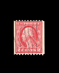 1418 O 449 image#449, 2c Red rotary coil, Ty. I, perf. 10 horiz., used, rich characteristic color and impression, wavy machine cancel, very fine for this scarce coil; 1983 PF certificate. (Image) 600.00