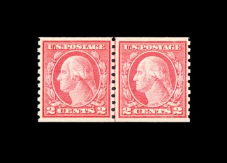 1420 nh 454 image#454, 2c Red rotary coil, Ty. II, perf. 10 vert., joint line pair, bright and fresh, nicely centered, o.g., n.h., very fine; 2002 PSE certificate. (Image) 850.00