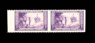 1486 nh 739b image#739b, 3c Wisconsin Tercentenary, horizontal pair, imperforate vertically, left sheet-margin pair, wonderfully fresh, o.g., n.h., very fine; a very scarce error; photocopy of a 1974 PF certificate for a block of four, this being the bottom pair. (Image) 900.00