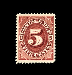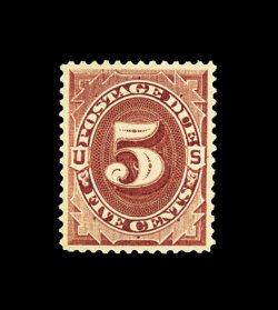 1589 og J34 image#J34, 5c Deep claret, an exceptionally choice mint single, being marvelously well centered within uncharacteristically large margins, bright fresh color, o.g., lightly hinged, extremely fine; 2001 PF certificate. (Image) 325.00