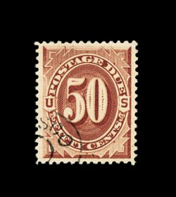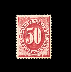 1597 og J58 image#J58, 50c Carmine lake, rich vibrant color, centered to the top right, o.g., relatively lightly hinged, a fine and highly collectable example of this key postage due rarity; 1999 PF certificate. (Image) 12,500.00