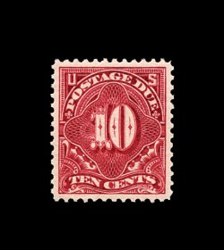 1590 og J35 image#J35, 10c Deep claret, superb mint example of this scarce value, possessing mathematically precise centering amid unusually wide margins, sumptuously rich color and a deeply etched impression on pristine paper, immaculate o.g., faintest trace of hinging, an extremely fine large-margined gem; 2003 PF certificate. (Image) 325.00