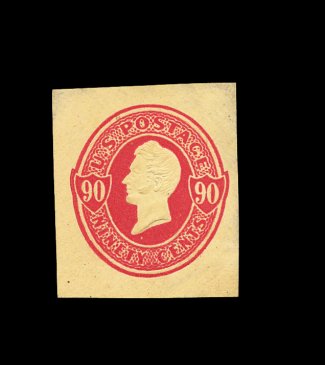 1670 ogc U211 var. image#U211 var., 90c Carmine on white, die 70, size 25, knife 122, wmk. 2, large mint entire, being the larger and scarcer of the two envelope sizes listed in the UPSS catalog, immaculately fresh and bright, extremely fine; a gem example of this seldom offered entire (UPSS #630). (Image) 160.00