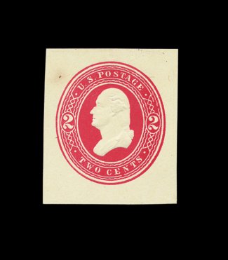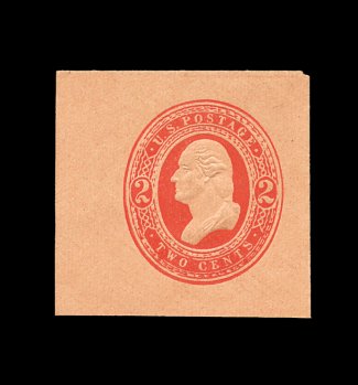 1675 og U246 image#U246, 2c Red on fawn, mint cut square, being a full corner measuring 42x40mm, highly detailed embossing, fresh and extremely fine. (Image) 400.00