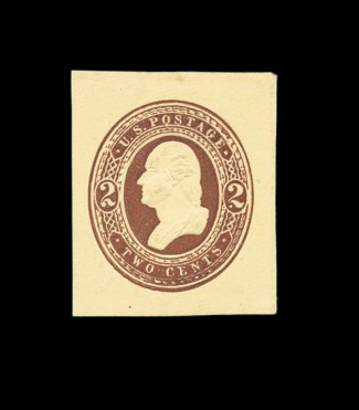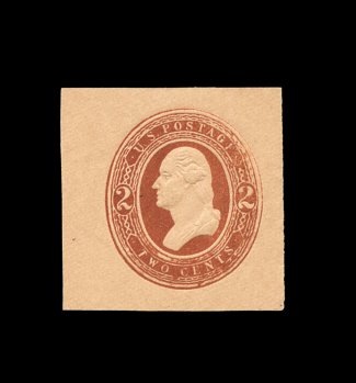 1679 og U276 image#U276, 2c Brown on fawn, round "O" in "TWO", mint cut square, measuring 37x37mm, fresh color, very fine and quite scarce; signed as genuine by Richard A. Champagne. (Image) 1,000.00