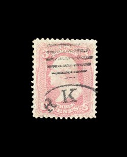 1064 O 64 image#64, 3c Pink, choice used single with neat portion of New York c.d.s. and rimless grid duplex, fresh pink color, very well centered being surrounded by attractive even perforations, very fine. (Image) 800.00