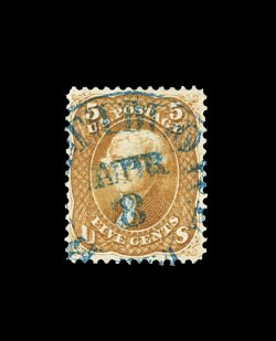 1066 O 67 image#67, 5c Buff, a very pretty used example of this issue with large portion of central blue Baltimore, Md. c.d.s., which wonderfully contrasts with intense deep color of the stamp, beautifully centered on bright white paper, extremely fine and choice. (Image) 820.00