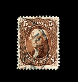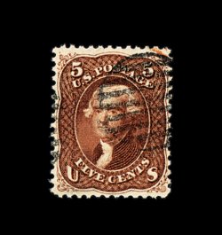 1077 O 75 image#75, 5c Red brown, another gem used example, possessing outstanding centering amid unusually large margins, particularly impressive is this stamp's gorgeous intense color and impression on bright paper, neat circular grid cancel, as well as a trace of a red pmk., extremely fine; 1999 PF certificate. (Image) 475.00