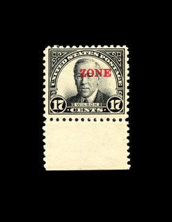 1783 og 91a image#91a, 17c Black, "Zone" only, bottom sheet-margin single, very fresh, well centered, o.g., very fine; one of the finest of the twenty errors printed; ex-Plass. (Image) 900.00