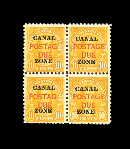 1795 ogbl J17b image#J17b, 10c Orange, "POSTAG" for "POSTAGE" error, mint block of four, positions 83-84/93-94, the left two stamps being the errors, which were the only two positions that produced the errors, brilliant color, tropicalized o.g., fine-very fine; signed Rendon. (Image) 900.00+